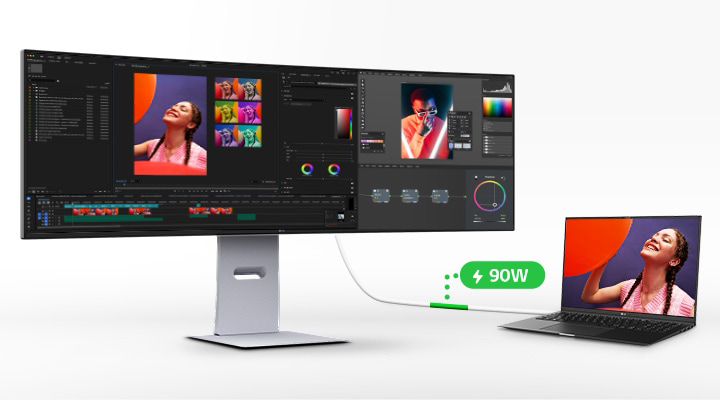 יציאת USB Type-C™ מאפשרת לכם תצוגה, העברת נתונים וטעינת מחשב נייד — כולם דרך כבל אחד בלבד. עם טעינה של עד 90W, אתם יכולים להטעין את המחשב הנייד המחובר תוך כדי הפעלת המסך.