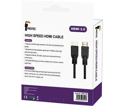 כבל High Speed HDMI 2.0 באורך 3 מטר תומך 4K UHD 60Hz בצבע שחור