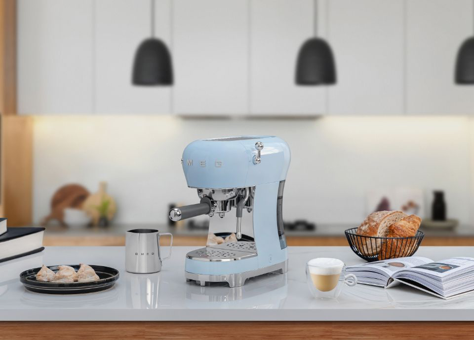 מכונת קפה אספרסו סמג ידנית בעיצוב רטרו Smeg ECF02PBEU Espresso Machine - צבע תכלת
