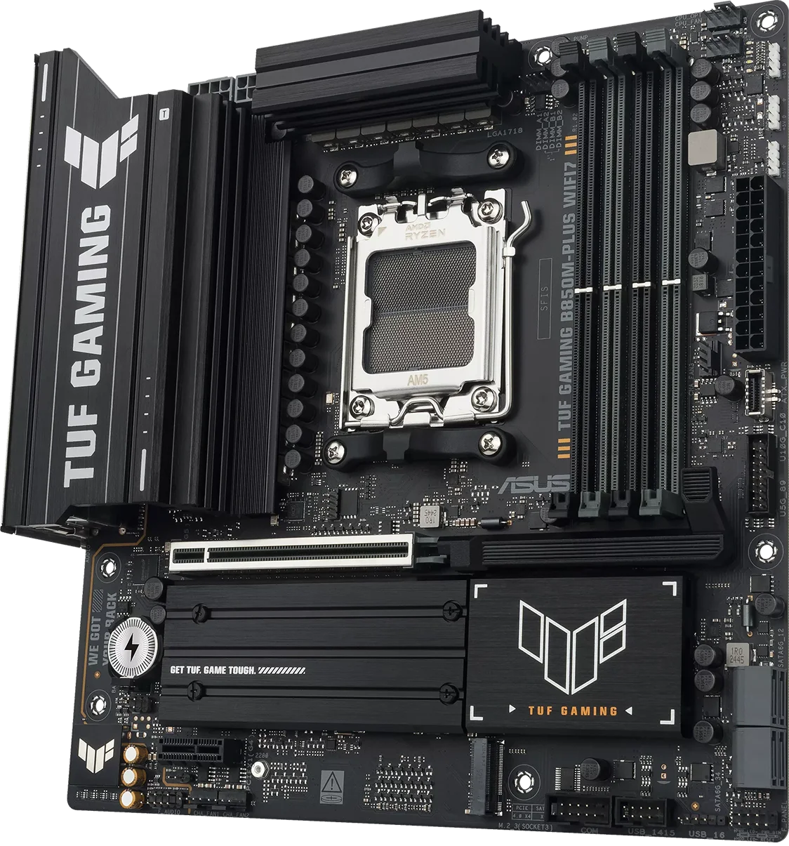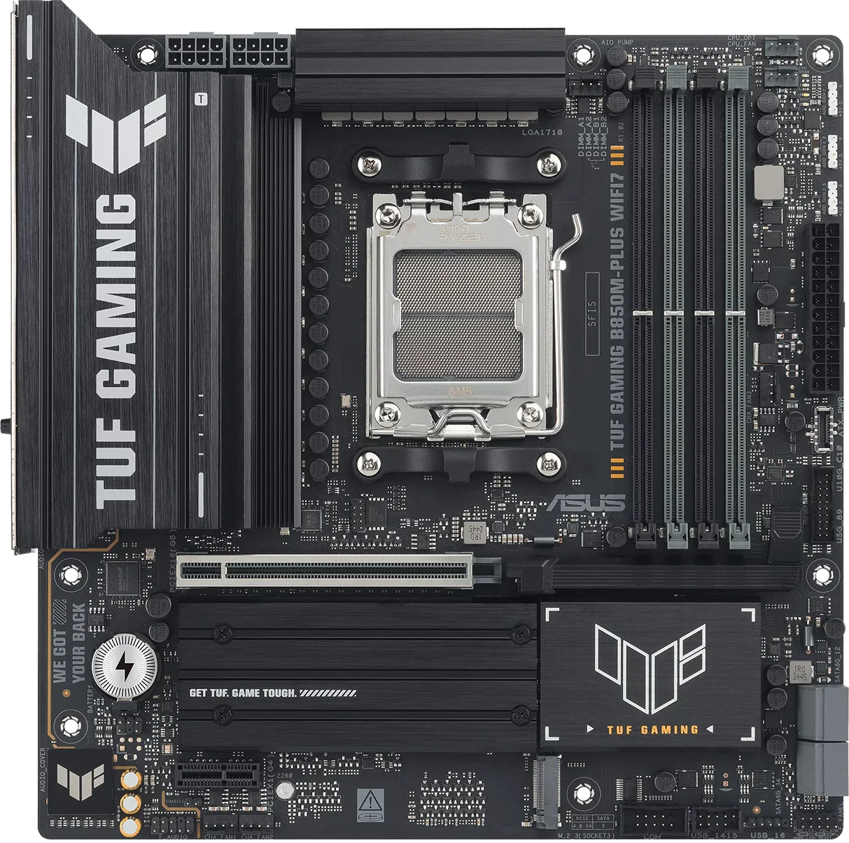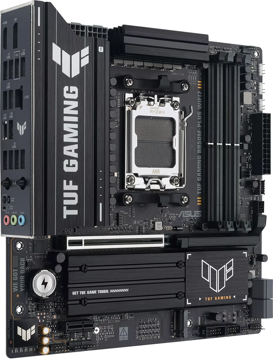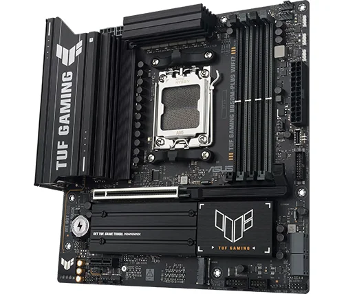 לוח האם ASUS TUF GAMING B850M-PLUS WIFI7 משלב את כל המרכיבים החיוניים של מעבדי AMD Ryzen™ מהדור החדש עם תכונות מוכנות לגיימינג ועמידות מוכחת. הלוח מתוכנן עם רכיבים בדרגת תקן צבאי, מערך אספקת חשמל משודרג ומערכת קירור מקיפה – כך שאתם מקבלים ביצועים יציבים וחזקים, גם בסשנים ארוכים של גיימינג אינטנסיבי.