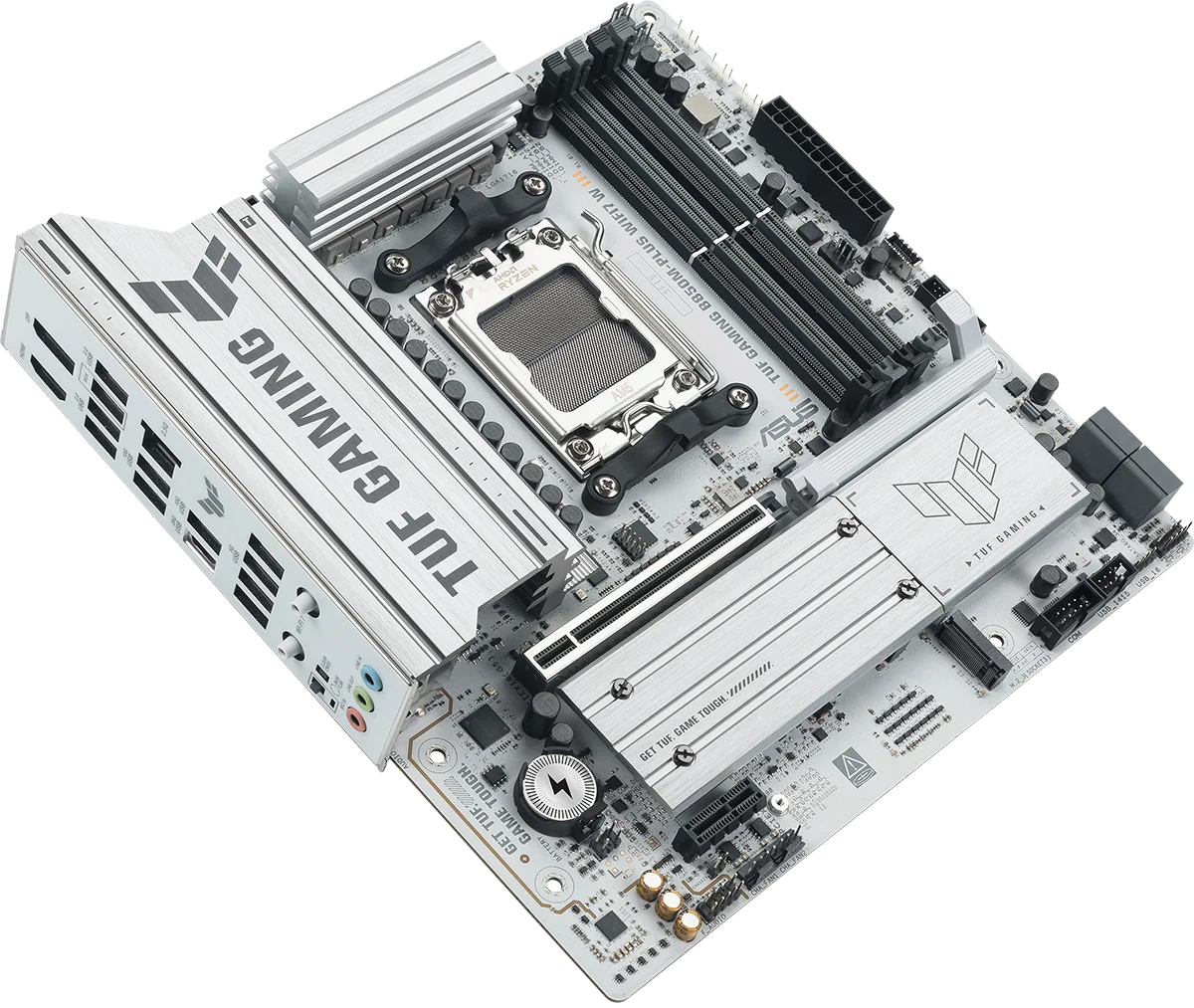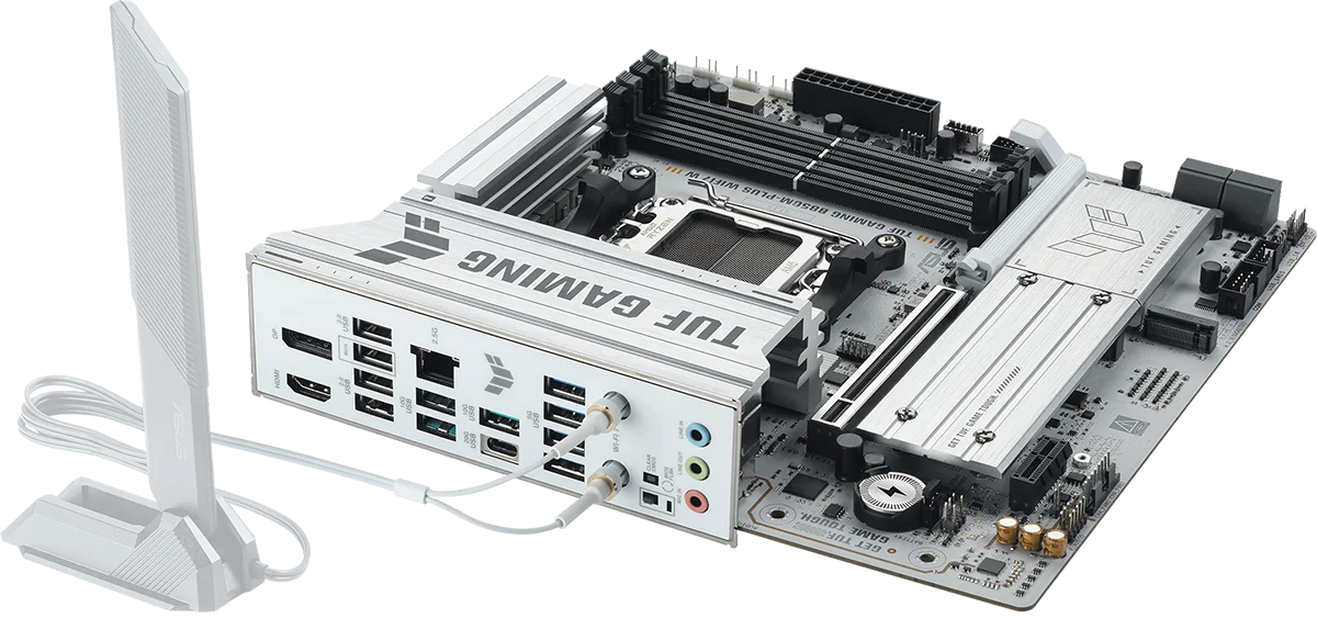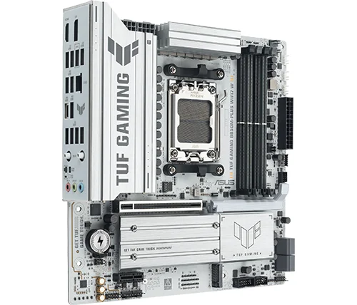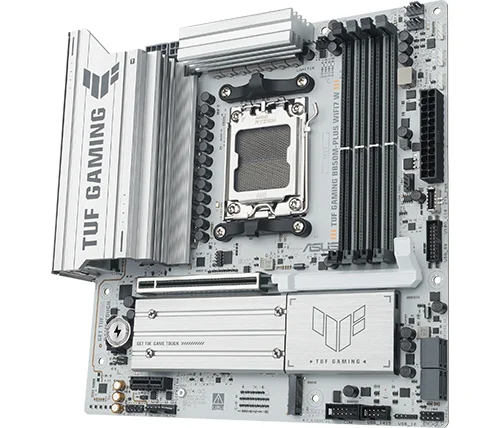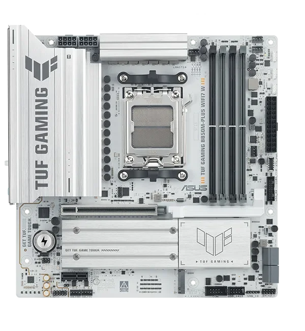 לוח האם ASUS TUF GAMING B850M-PLUS WIFI7 W משלב את כל המרכיבים החיוניים של מעבדי AMD Ryzen™ מהדור החדש עם תכונות מוכנות לגיימינג ועמידות מוכחת. הלוח מתוכנן עם רכיבים בדרגת תקן צבאי, מערך אספקת חשמל משודרג ומערכת קירור מקיפה – כך שאתם מקבלים ביצועים יציבים וחזקים, גם בסשנים ארוכים של גיימינג אינטנסיבי.