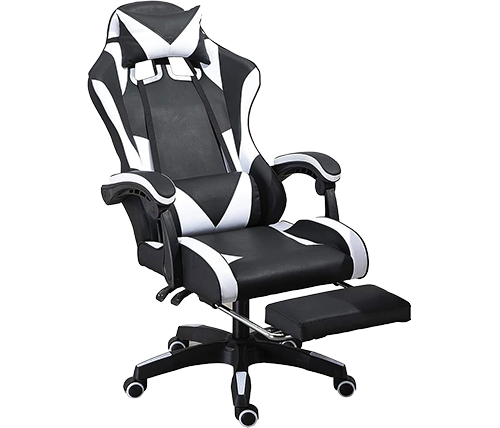 כיסא גיימינג אורטופדי עם הדום נשלף דגם דלתא פלוס בצבע שחור לבן – משלוח חינם