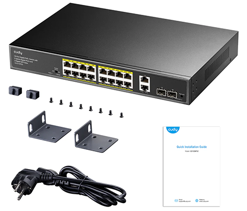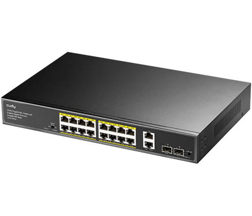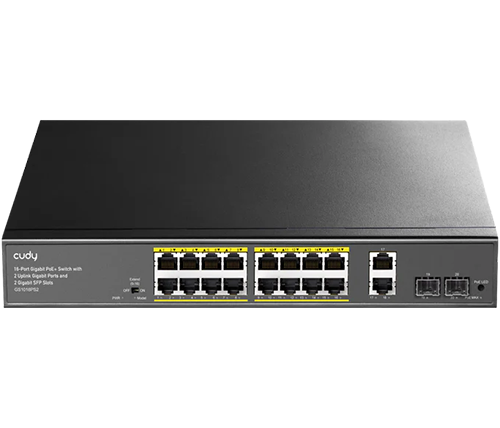 מתג לא מנוהל Cudy GS1018PS2 16-GbE PoE+ Switch – עם 2 חיבורי Uplink GbE ו־2 Uplink SFP – הספק 200W – תומך התקנה בארון תקשורת