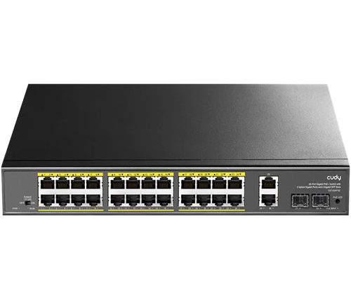 מתג לא מנוהל Cudy GS1026PS2 24-GbE PoE+ Switch – עם 2 חיבורי Uplink GbE ו־2 Uplink SFP – הספק 300W – תומך התקנה בארון תקשורת