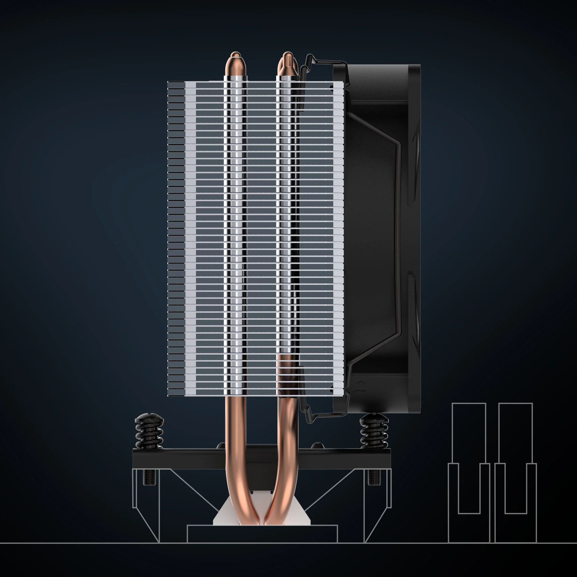 הסידור בהיסט מבטיח העברת חום אופטימלית מהבסיס אל הצלעות – לפיזור חום אחיד ולביצועי קירור משופרים.