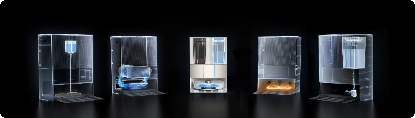 ה-L20 Ultra שוטף ביסודיות את המגבים שלו בתחנת הבסיס בכל פעם שהם מתלכלכים מדי, ושוב עם סיום משימת הניקוי.