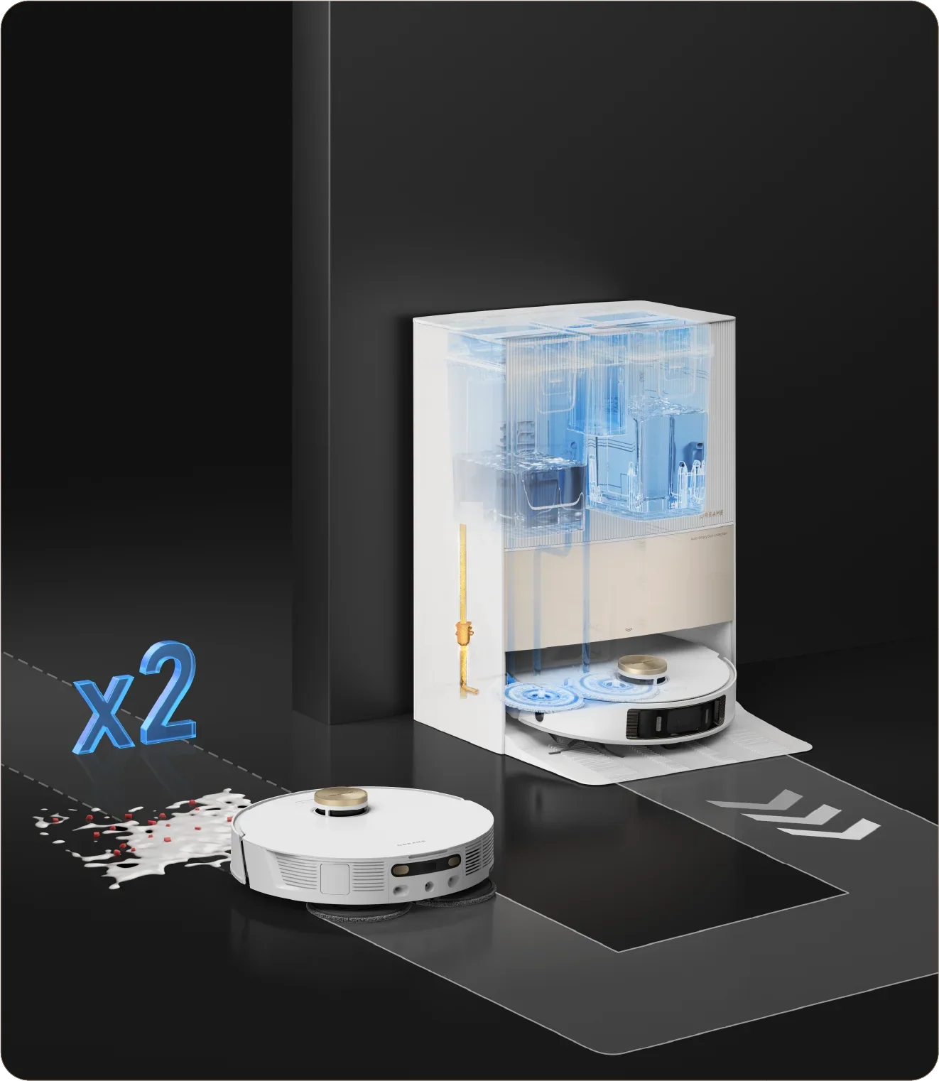 קבלו ניקיון עמוק יותר בכל רחבי ביתכם עם טכנולוגיית ה-MopExtend™ הבלעדית של Dreame המונעת על ידי בינה מלאכותית ומערכת שטיפה DuoScrub™ מרשימה. תהנו משטיפה מפורטת שמותירה את הרצפות נקיות באופן יוצא דופן וגורמת לכל החדר להבריק.