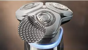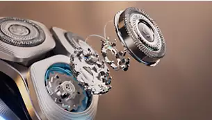 ראשי גילוח גמישים ומתקדמים המסתגלים באופן דינמי לקימורי הפנים. מגע רציף עם העור מאפשר דיוק מוגבר ב-20%* באזורים קשים כמו הצוואר ותחת האף.