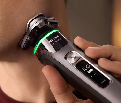 חיישן חכם קורא את צפיפות השיער 500 פעמים בשנייה ומתאים את עוצמת החיתוך באופן אוטומטי, לגילוח קל ועדין גם על זקנים צפופים.