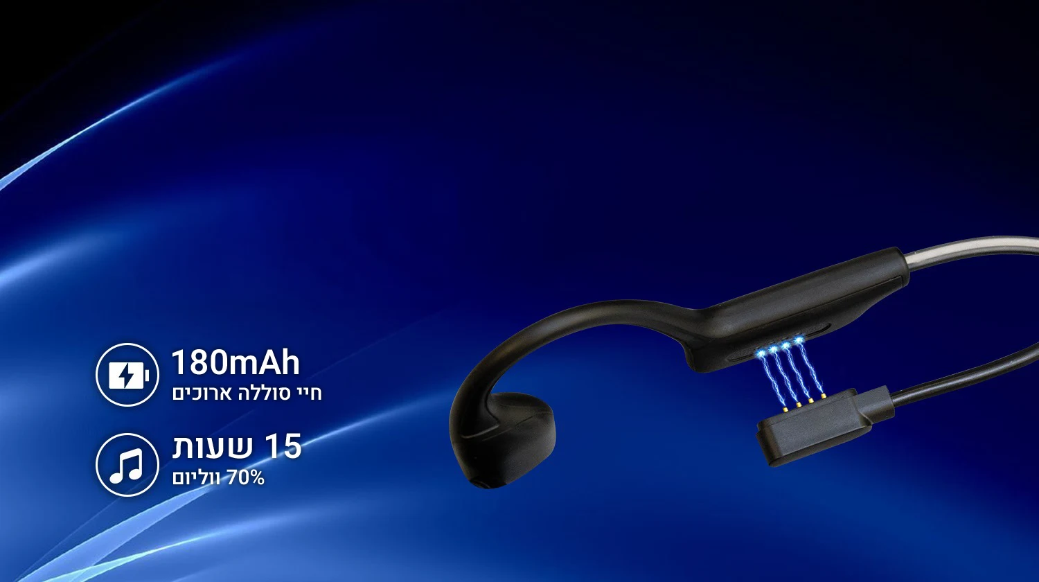 סוללת 180mAh מספקת עד 15 שעות נגינה בעוצמת קול של 70%, כך שתוכל ליהנות ממוזיקה ושיחות לאורך כל היום – מאימון הבוקר ועד לסיום היום.