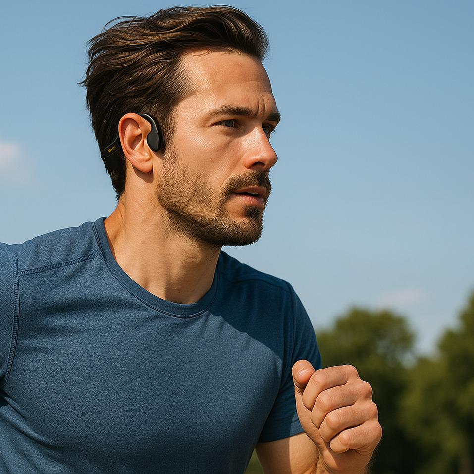 מבנה האוזניות תוכנן להתאמה מושלמת לראש, להבטחת אחיזה יציבה ונוחות לאורך זמן – גם בזמן פעילות ספורטיבית.