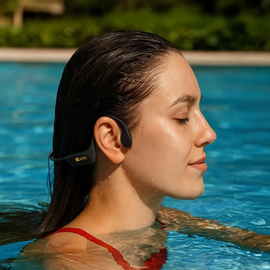 אוזניות לשחייה וספורט הולכת עצם AGM Motion Buds 2 אלחוטיות עם טעינה מגנטית ותאורת LED