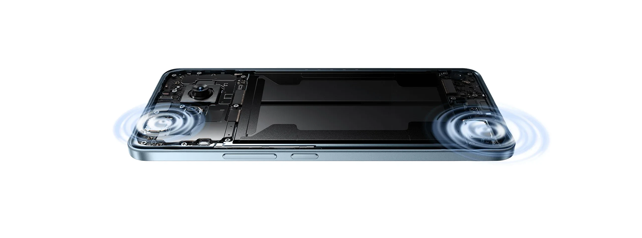 מצויד ברמקולים כפולים המספקים עוצמת שמע של עד 300% לחוויית שמע עוצמתית ומקיפה.