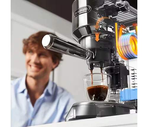 מכונת אספרסו ידנית עם מקציף חלב Delonghi EC885.M בצבע כסוף