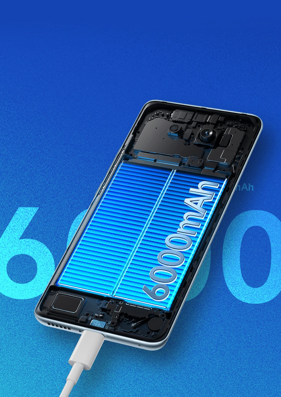 מצויד בסוללת 6000mAh עוצמתית המספקת שימוש ממושך לאורך כל היום, כך שתוכלו להמשיך בלי דאגות.