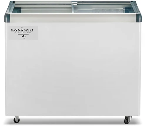 מקפיא / מקרר שוכב תעשייתי + מכסה זכוכית 400 ליטר Faynameli RF-417PG בצבע לבן – משלוח חינם