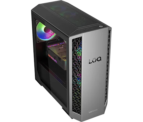 ה-Lenovo LOQ Tower 26ADR10 מציג עיצוב חדש לחלוטין – פאנל צד שקוף להצגת החומרה שלכם עם תאורת RGB. שילוב צבעים דו־גוני של Eclipse Black ו-Luna Grey מעניק מראה ייחודי. שילוב חכם של פתחי אוורור בטקסטורת תלת־ממד ופס תאורה מבטיח זרימת אוויר יעילה תוך שמירה על מראה אלגנטי.