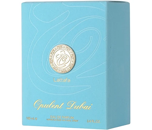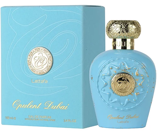 בושם יוניסקס Lattafa Opulent Dubai בנפח 100 מ"ל עם תווים עליונים של לימון, ג'ינג'ר, אשכולית ומנגו, תווי לב של יסמין, סיגלית ועץ ארז, ותווי בסיס של ענבר, רכיבים עציים, טחב אלון ובנזואין.