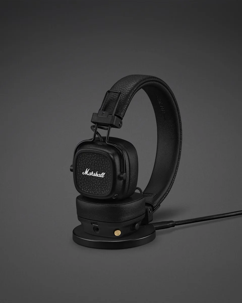 טעינה אלחוטית מאפשרת לכם להטעין את Major V בקלות בכל רגע שצריך. פשוט הניחו את האוזניות על משטח טעינה ואתם מוכנים להמשיך. ניתן גם לטעון באמצעות כבל USB-C המצורף באריזה.