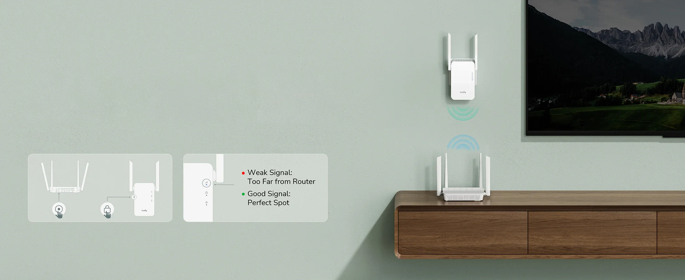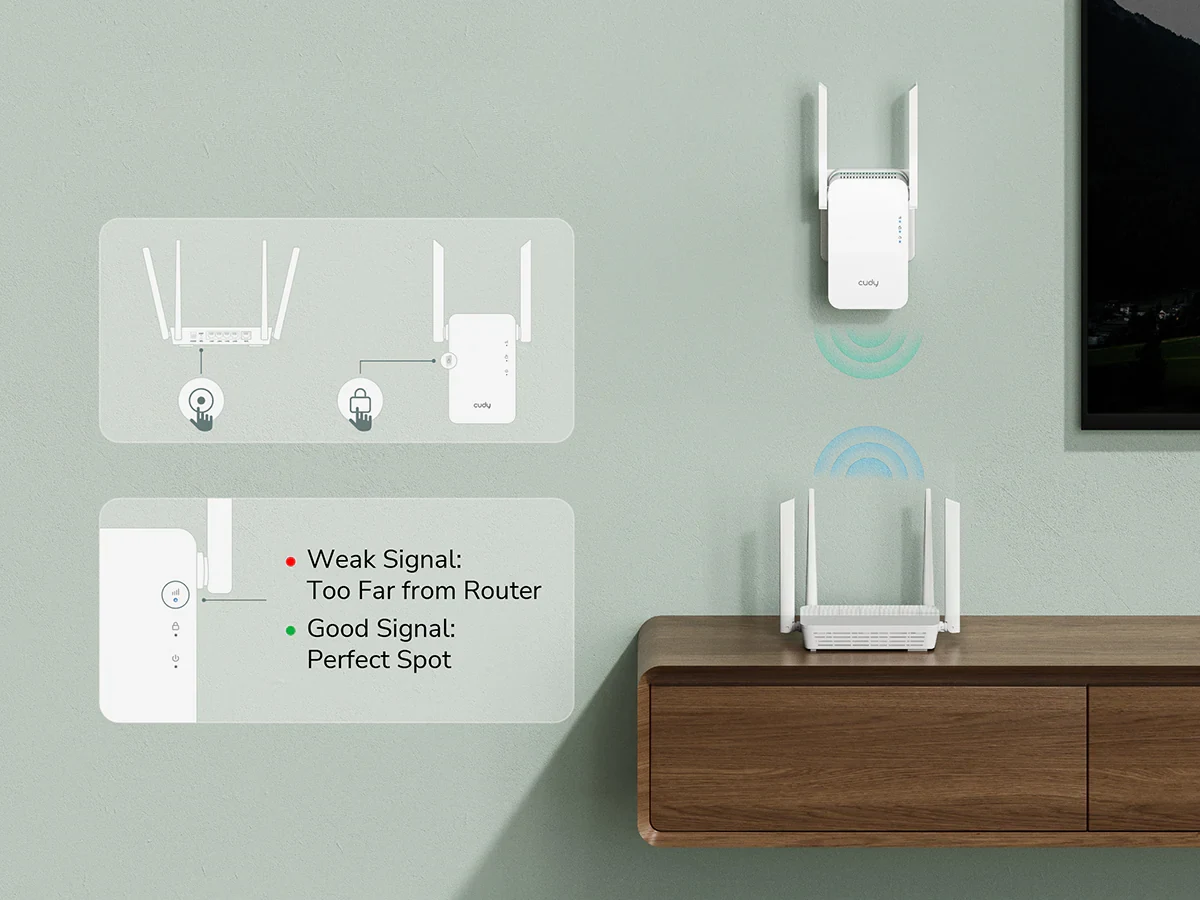 התחברו באופן מיידי בלחיצה פשוטה על כפתור ה-WPS - אין צורך בהגדרות מסובכות. השתמשו במחוון עוצמת האות כדי למצוא את המיקום המושלם לביצועים אופטימליים.
