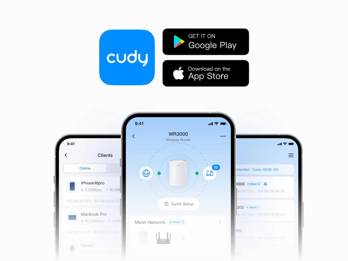 נהלו את הרשת שלכם ישירות מהטלפון. דגם זה תומך בשליטה מרחוק מבוססת ענן ובשליטה מקומית באמצעות אפליקציית Cudy.