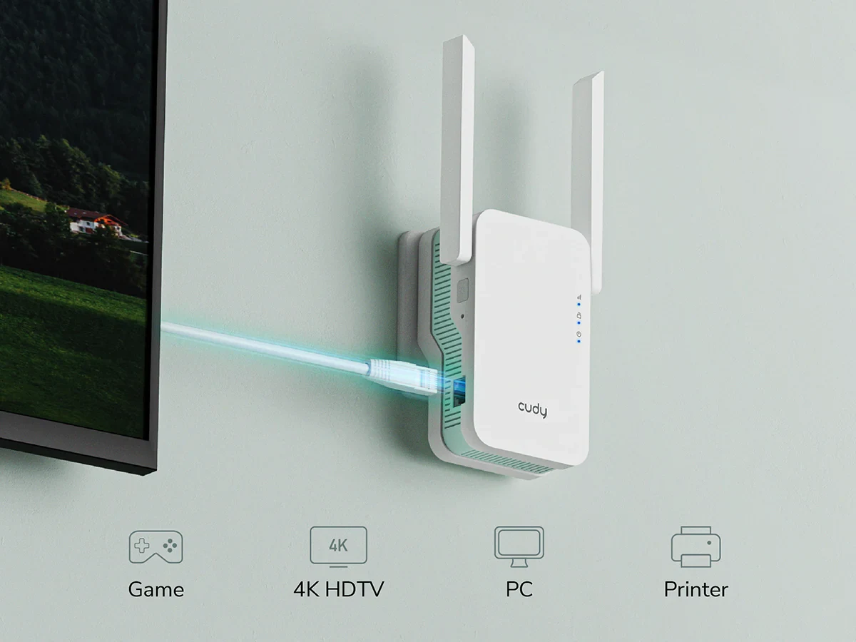 בנוסף להרחבת כיסוי ה-Wi-Fi, יציאת ה-Ethernet (איטרנט) המהירה מספקת חיבור יציב ואמין למכשירים הקוויים שלכם, כגון טלוויזיות חכמות, מחשבים אישיים וקונסולות משחקים.