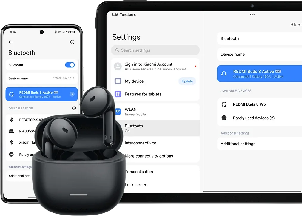 העיצוב החדש של סדרת REDMI משלב גודל קומפקטי ומשקל קל, המעניקים אחיזה נוחה ותופסים מעט מקום בכיס או בתיק. כך תוכלו לקחת אותן איתכם בקלות ולהתאים אותן לאורח החיים היומיומי שלכם.