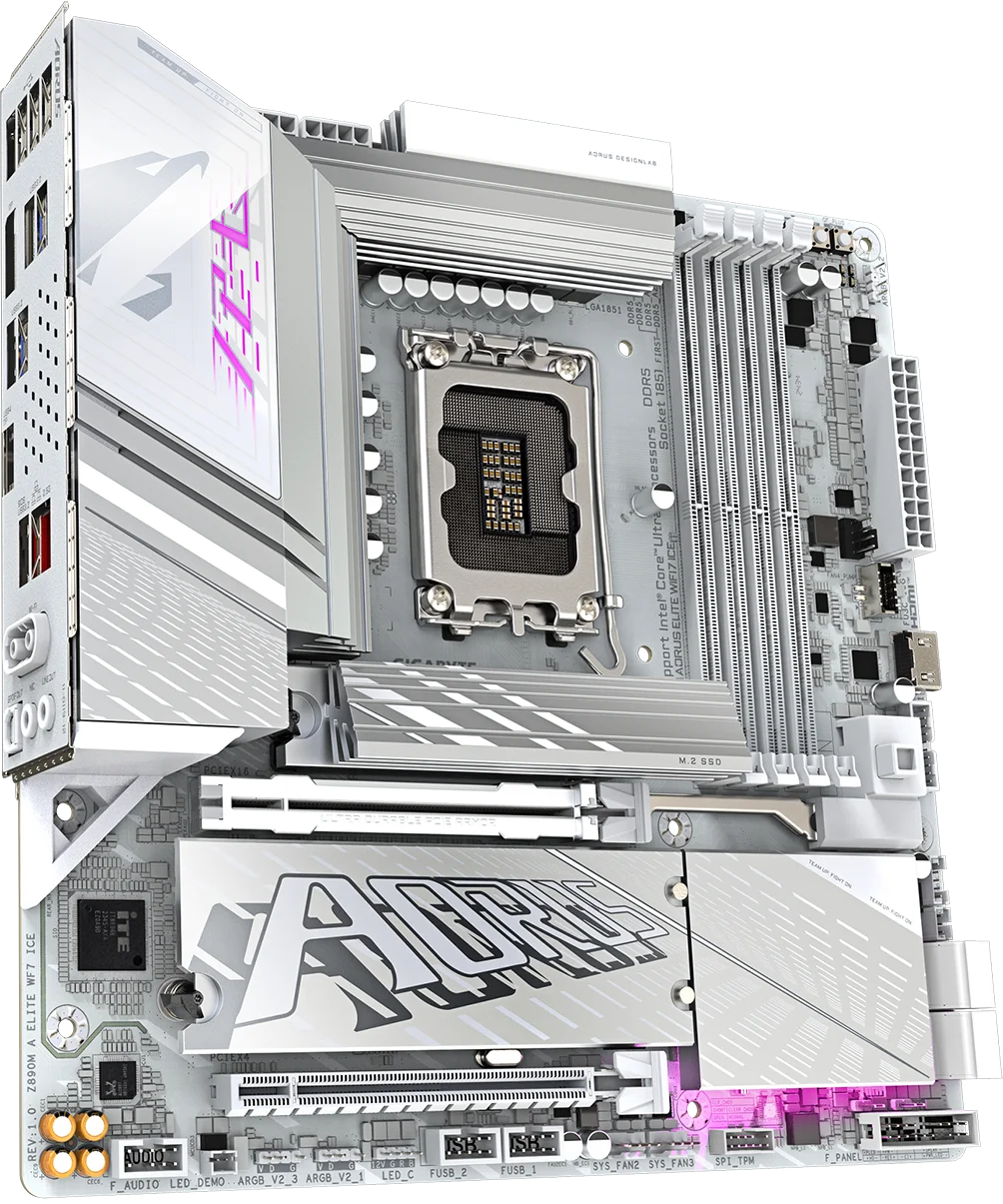 לוח אם Gigabyte Z890M AORUS ELITE WIFI7 ICE mATX 1851 בצבע לבן