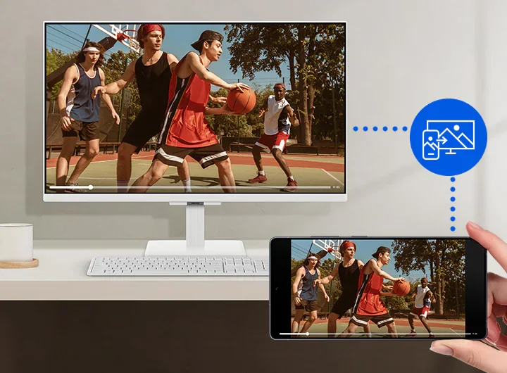 הזרימו את התוכן שלכם למסך הגדול בקלות. התחברו ללא מאמץ ותיהנו מסרטונים, תמונות ומסמכים מהמכשיר הנייד שלכם – ישירות על המסך החכם.³