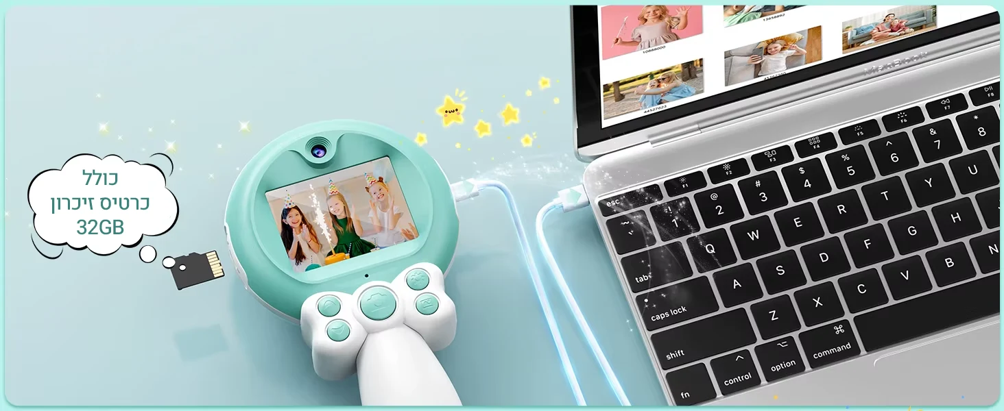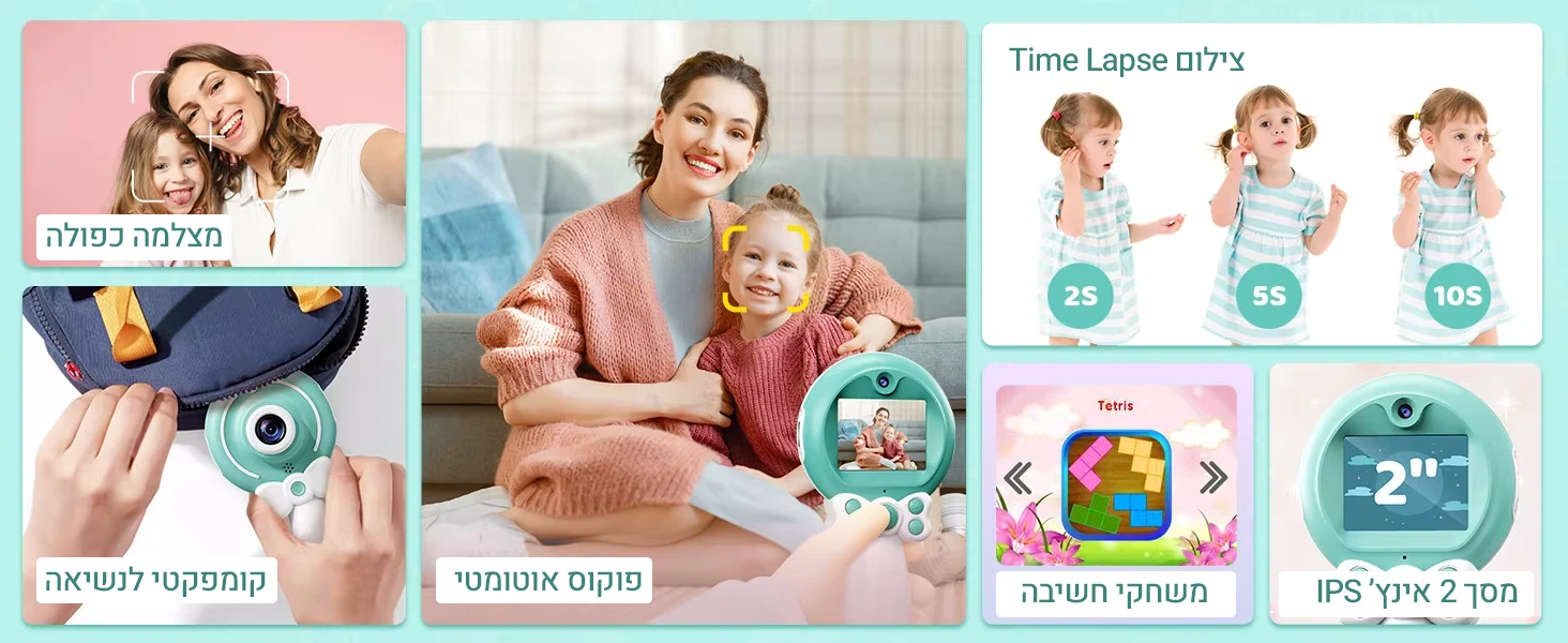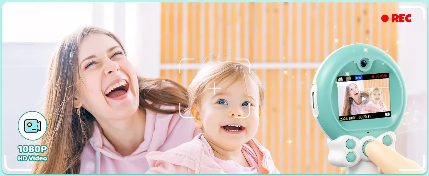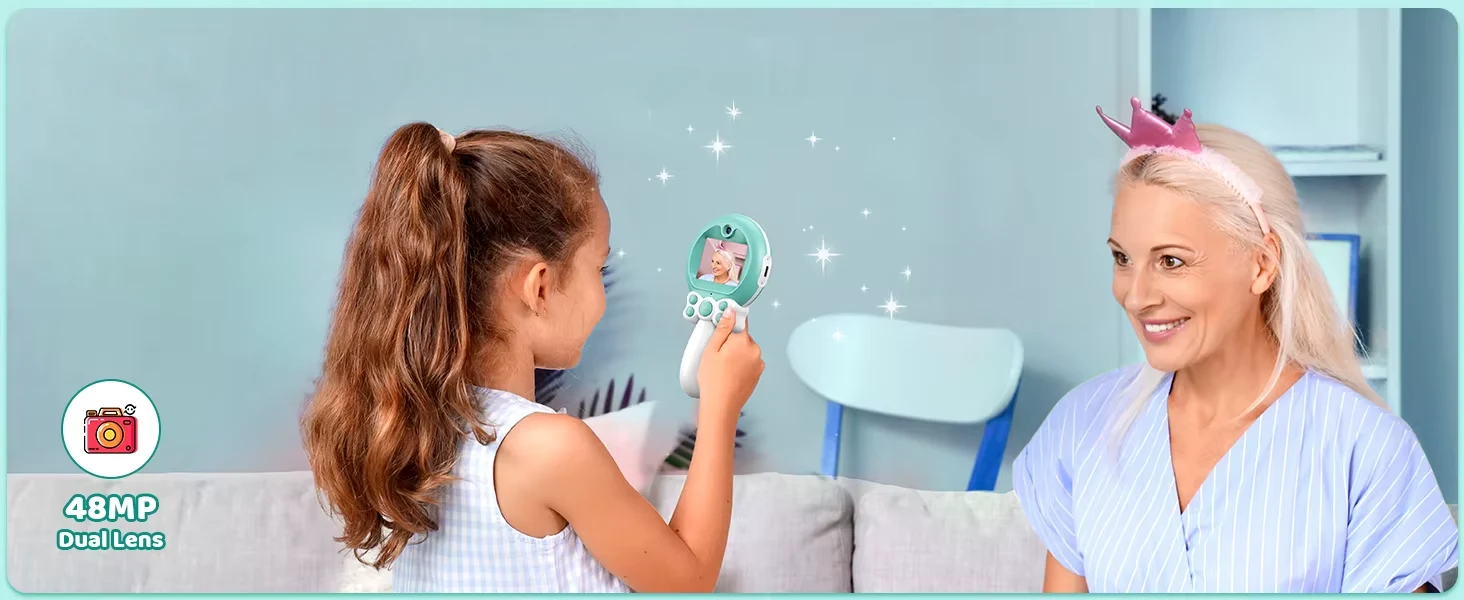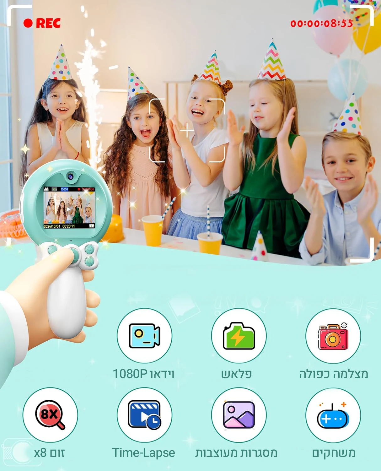 מצלמת צעצוע דיגיטלית לילדים 1080P 48MP עם ידית סלפי ומסך IPS מבית Mizuki בצבע ירוק