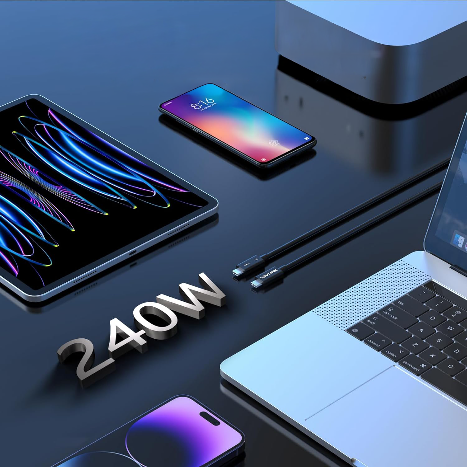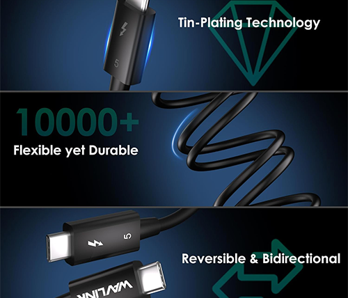 ה-Wavlink WL-T5C10P הוא לא סתם כבל, הוא כרטיס הכניסה שלכם לעידן ה-Thunderbolt 5. עם יכולת העברת נתונים שמגיעה עד 120Gbps ותמיכה בטעינה מפלצתית של 240W.