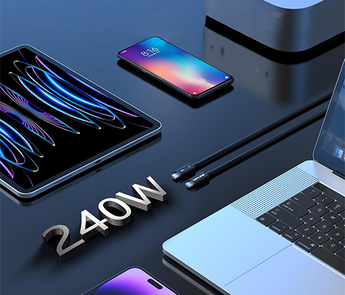 הכבל תומך בתקן הטעינה החדש EPR (Extended Power Range). הוא מסוגל להעביר עד 240 וואט (48V/5A), מה שאומר שהוא יכול להטעין בקלות את הלפטופים הגיימינג הכבדים ביותר ותחנות עבודה ניידות (Workstations) דרך חיבור USB-C יחיד.