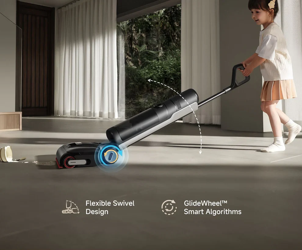 ה-H15 Pro משתמש באלגוריתמים חכמים על שני הגלגלים האחוריים כדי להבטיח שהנעה אחורה תהיה חלקה לא פחות מתנועה קדימה. דחיפה ומשיכה קלה הופכת את ניקוי הרצפה ממטלה פיזית מתישה לחוויה נעימה ומהנה אחרי העבודה.