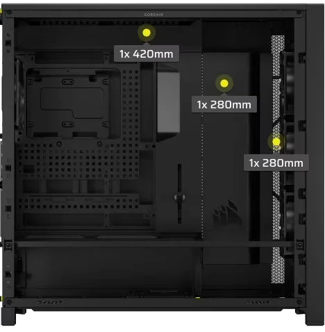שדרגו את הקירור שלכם עם שלושה מיקומי התקנה לרדיאטור עד 420 מ"מ בחלק העליון ועד 360 מ"מ בחזית ובצד. תוכלו להתקין עד 14 מאווררי 120 מ"מ בו-זמנית, להבטחת כניסת אוויר קר רציפה ופליטת אוויר חם יעילה.
