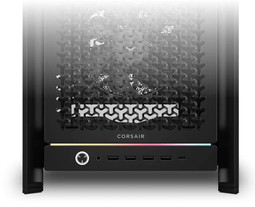 פס תאורת RGB מעל פאנל ה-I/O הקדמי מוסיף נגיעה של צבע בהתאמה אישית לחזית המארז.