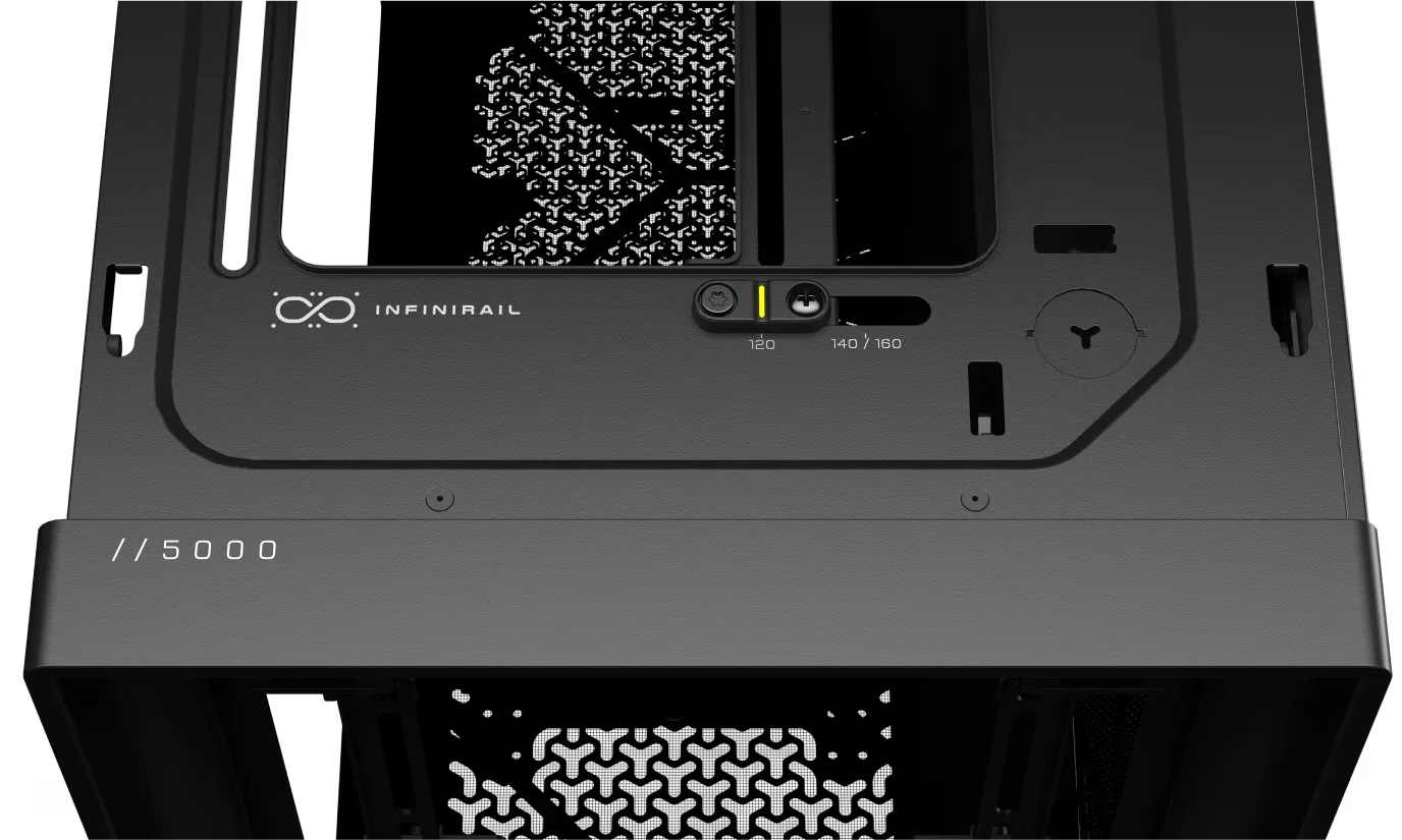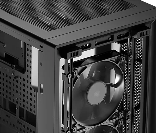 מערכת התקנה רב-נקודתית מפלדה מספקת גמישות חסרת תקדים בתצורת המאווררים הקדמיים והעליונים. החליקו בקלות את המסילה להתקנת מאווררים עד 200 מ"מ (140 מ"מ בחלק העליון) בדיוק במקום שבו אתם צריכים, כדי להבטיח זרימת אוויר ממוקדת ללא מגבלות של נקודות התקנה קבועות.
