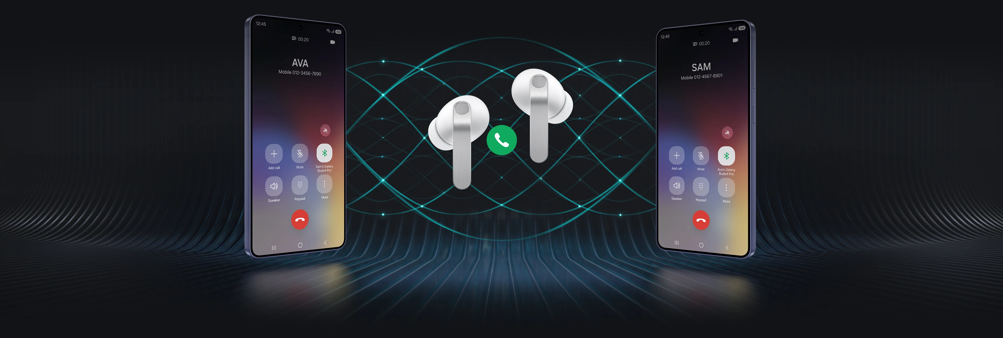 אפילו השיחות שלכם ברורות, באיכות של שמע Hi-Fi. הקול שלכם נקלט בבירור על ידי 6 מיקרופונים שממוקמים סביב הראש שלכם, שמבודדים אותו בצורה חכמה מרעשי הרקע בעזרת טכנולוגיית Deep Neural Network (DNN) מתקדמת. אות הקול הנקי במיוחד מועבר ללא מאמץ דרך טכנולוגיית פס רחב במיוחד (SWB) של עד 16kHz בין ה-Galaxy Buds4 Pro לבין סמארטפון ה-Galaxy שלכם. שומעים ונשמעים חזק וברור – גם בסביבות רועשות.1,10,11