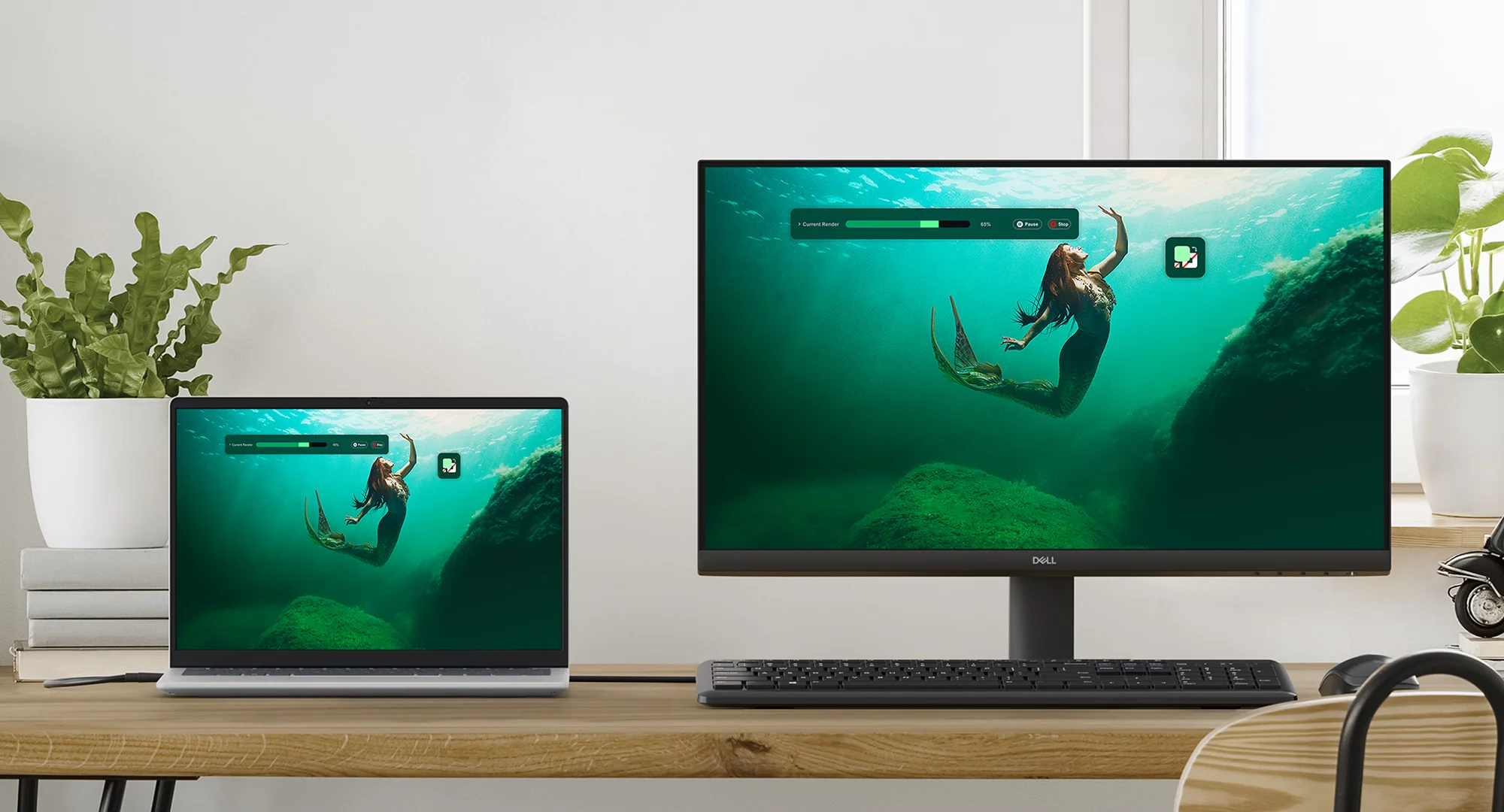 שמרו על סביבת עבודה נקייה ומאורגנת עם מסך קומפקטי וספק כוח מובנה.