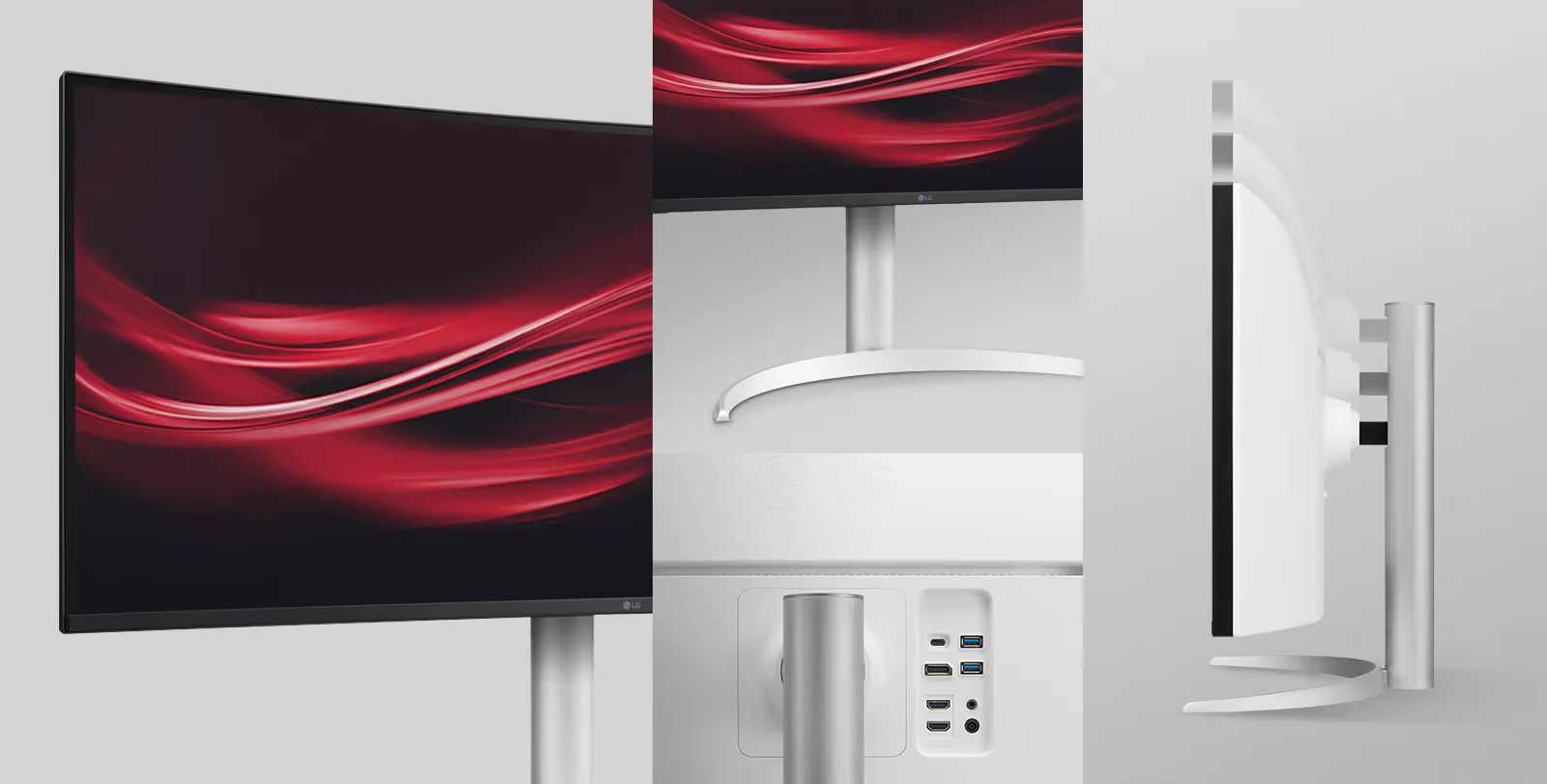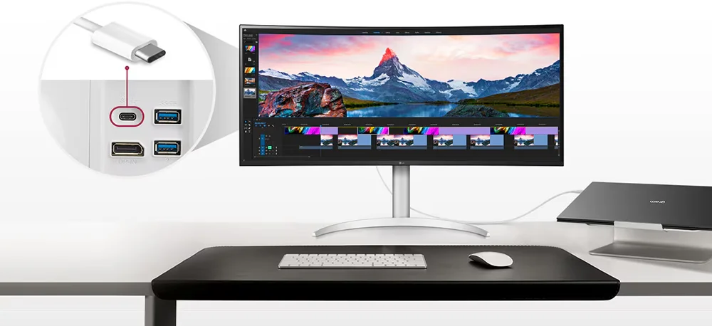 מסך מחשב רחב לבן 37.5 אינץ LG UltraWide – רזולוציה +QHD – פאנל IPS – תומך HDR10 – חיבורים USB-C 90W / HDMI / DP – דגם 38WP85CP-W