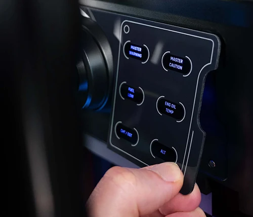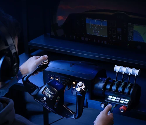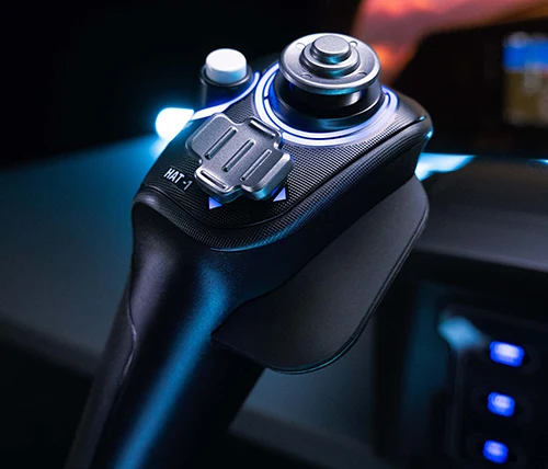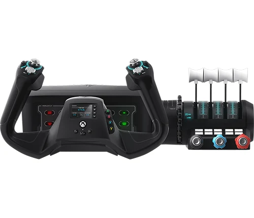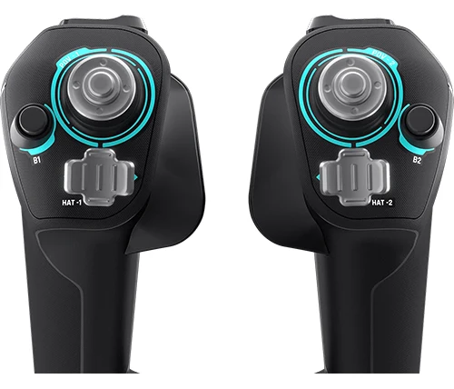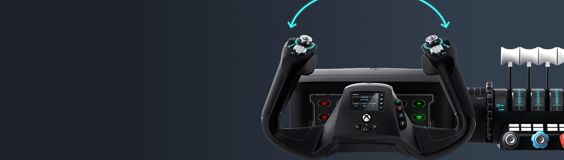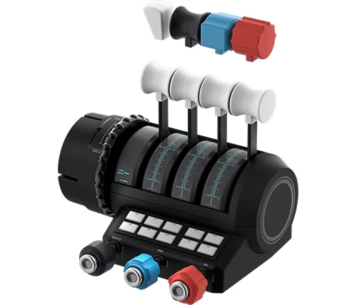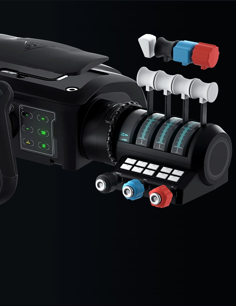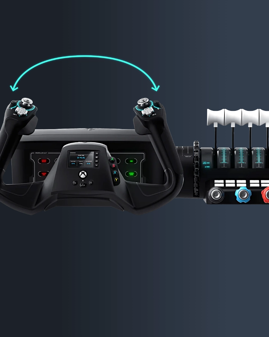 שליטה באמצעות ידיות כפולות וגלגל Pitch Trim מובנה לחוויית טיסה מציאותית, המתאימה למטוסים קלים ומטוסי סילון. ניתן להתאים אישית את המצערת בעזרת ראשי ידיות מתחלפים הכלולים בערכה, בהתאם לסגנון הטיסה המועדף.