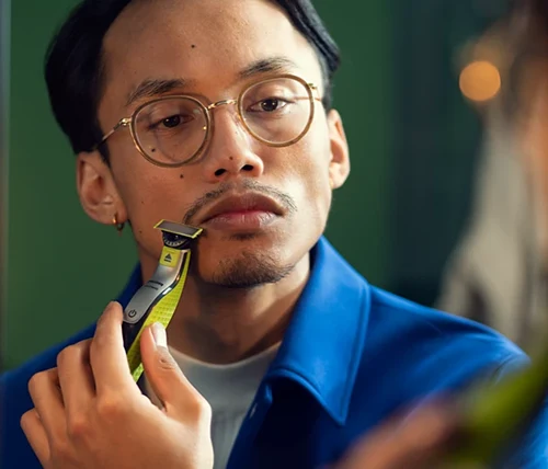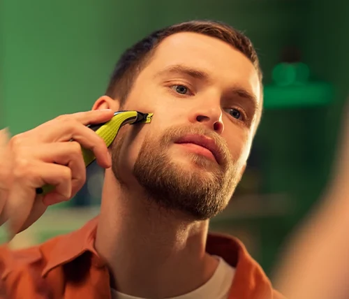 Philips OneBlade הוא מכשיר עיצוב היברידי מהפכני חדש שיכול לקצץ, לגלח וליצור קווים וקצוות נקיים, בכל אורך שיער. מערכת ההגנה הכפולה שלו – ציפוי החלקה בשילוב עם קצוות מעוגלים – הופכת את הגילוח לקל ונוח יותר. טכנולוגיית הגילוח שלו כוללת סכין חיתוך מהיר, שמתמודד בקלות עם כל אורך שיער.