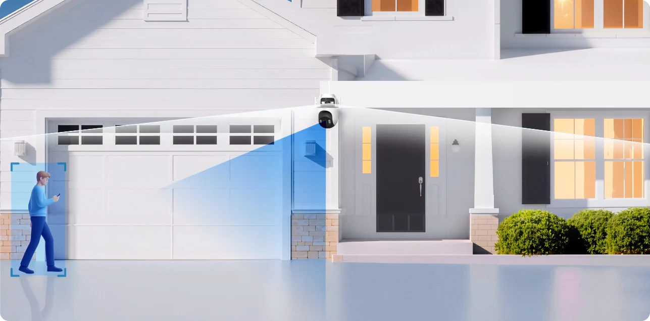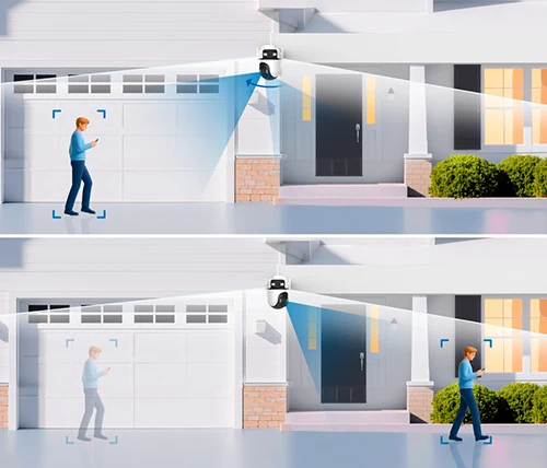 שתי המצלמות פועלות יחד באופן דינמי כדי לעקוב בצורה חלקה אחר תנועה – כאשר העדשה הקבועה מזהה אירועים כמו תנועה, אנשים או חיות מחמד, עדשת ה-Pan/Tilt תסתובב אוטומטית כדי להתמקד ולעקוב אחר האובייקט הנע.