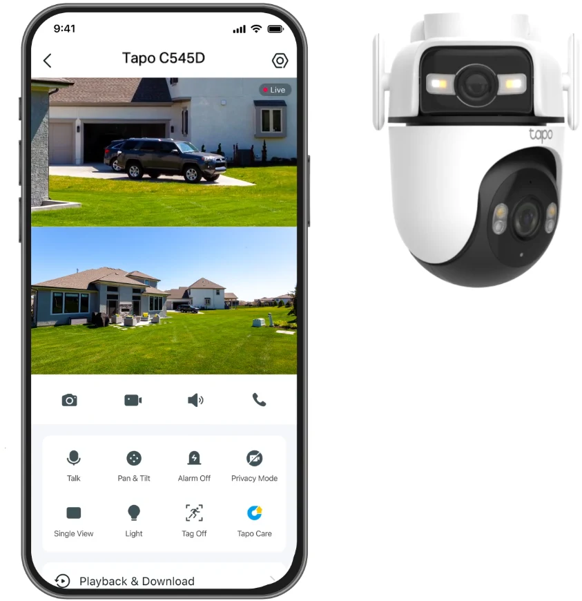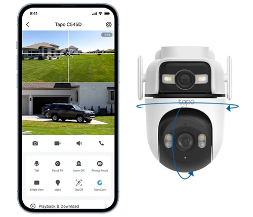 מצלמת אבטחה לבחוץ TP-Link Tapo C545D Wi-Fi עם עדשה כפולה, צידוד והטיה