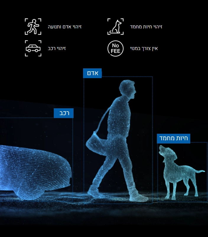 הישאר מעודכן עם זיהוי חכם מבוסס AI שמזהה ומתריע על אנשים, חיות מחמד וכלי רכב – ללא צורך במנוי. התאם אישית את ההתראות שלך על ידי בחירת סוגי הזיהוי שיפעילו התראות.