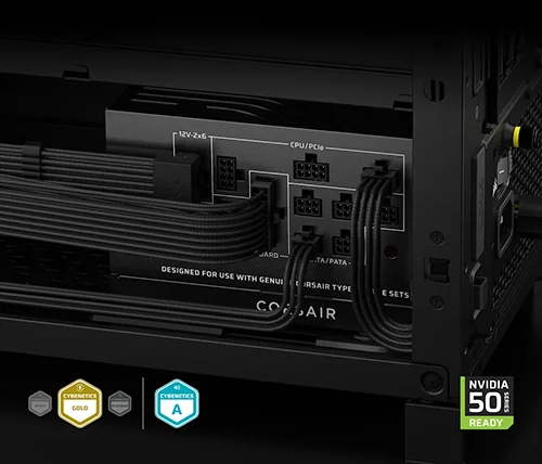 הפעילו כרטיסי מסך מודרניים, כמו NVIDIA® GeForce RTX™ סדרת 50, באמצעות כבל 12V-2x6 הכלול, עם מחבר דו-צבעי שמאפשר לכם לוודא חיבור תקין בצד ה-GPU – לאספקת חשמל קלה וללא דאגות.