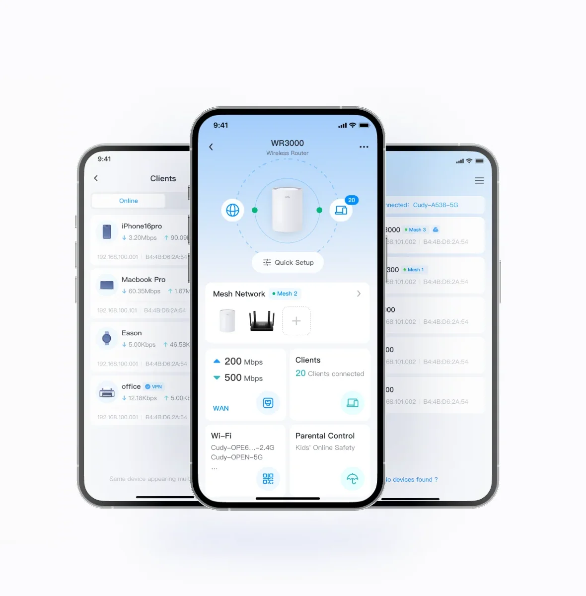 קבעו זמני שימוש ב-Wi-Fi וחסמו תכנים לא מתאימים כדי לשמור על בטיחות המשפחה שלכם ברשת. נהלו בקלות מספר מכשירים עם פרופילים מותאמים אישית.