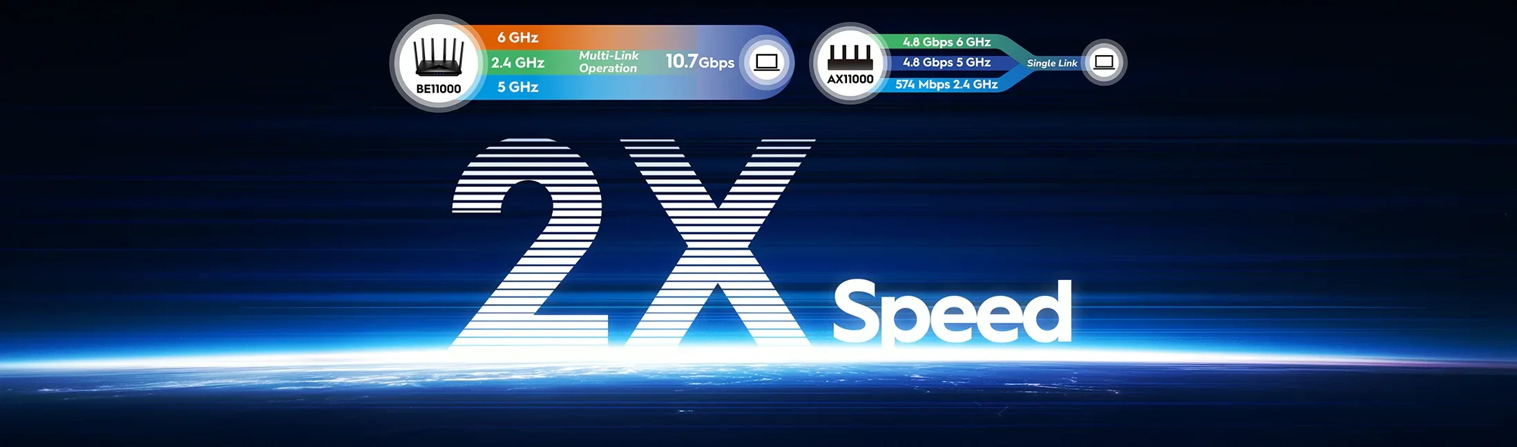 טכנולוגיית MLO (Multi-Link Operation) מחברת את המכשירים שלכם לשלושה תחומי תדר במקביל, ומספקת מהירות גבוהה במיוחד, יציבות יוצאת דופן והשהיה נמוכה במיוחד.
