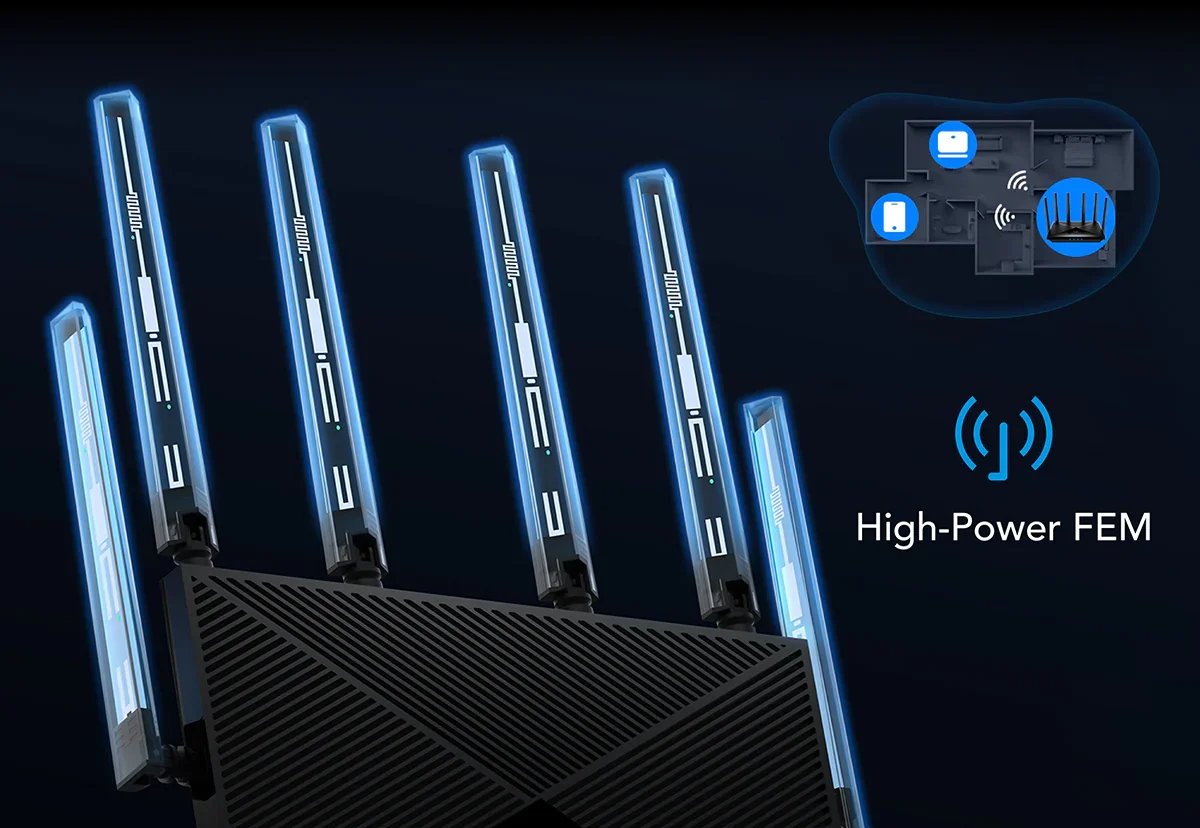 ארבעת מודולי ה-FEM מספקים עוצמת שידור גבוהה במיוחד להתמודדות עם סביבות מורכבות. האנטנות החזקות עם טכנולוגיית Beamforming מעניקות אות ממוקד וחזק יותר למכשירים שלכם.