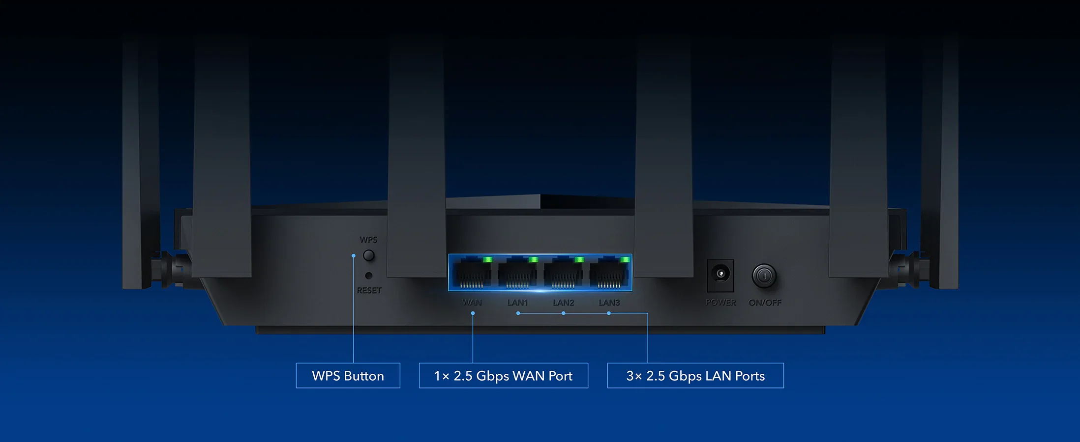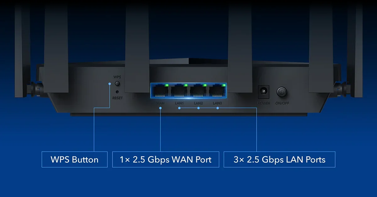 הורידו, העלו והזרימו תכנים במהירות של עד 2500Mbps. ארבע יציאות 2.5G מספקות חיבור קווי מהיר במיוחד למחשב, לטלוויזיה, לקונסולה, ל-NAS ועוד – במהירות גבוהה פי 2.5 מגיגה סטנדרטי.