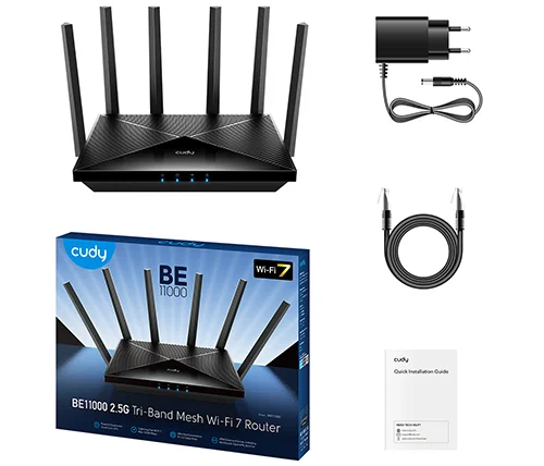 ראוטר Cudy BE11000 2.5G Tri-Band Mesh Wi-Fi 7 WR11000 כולל אפליקציה בעברית
